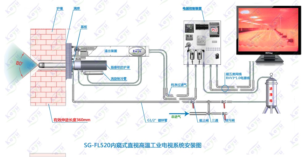 采用自動(dòng)光圈的高溫針孔鏡頭,提高鏡頭對爐內照度變化下的敏感度;鏡頭端面采用藍寶石制成,能耐600℃高溫,即使在意外情況下,也不致于燒壞鏡頭。